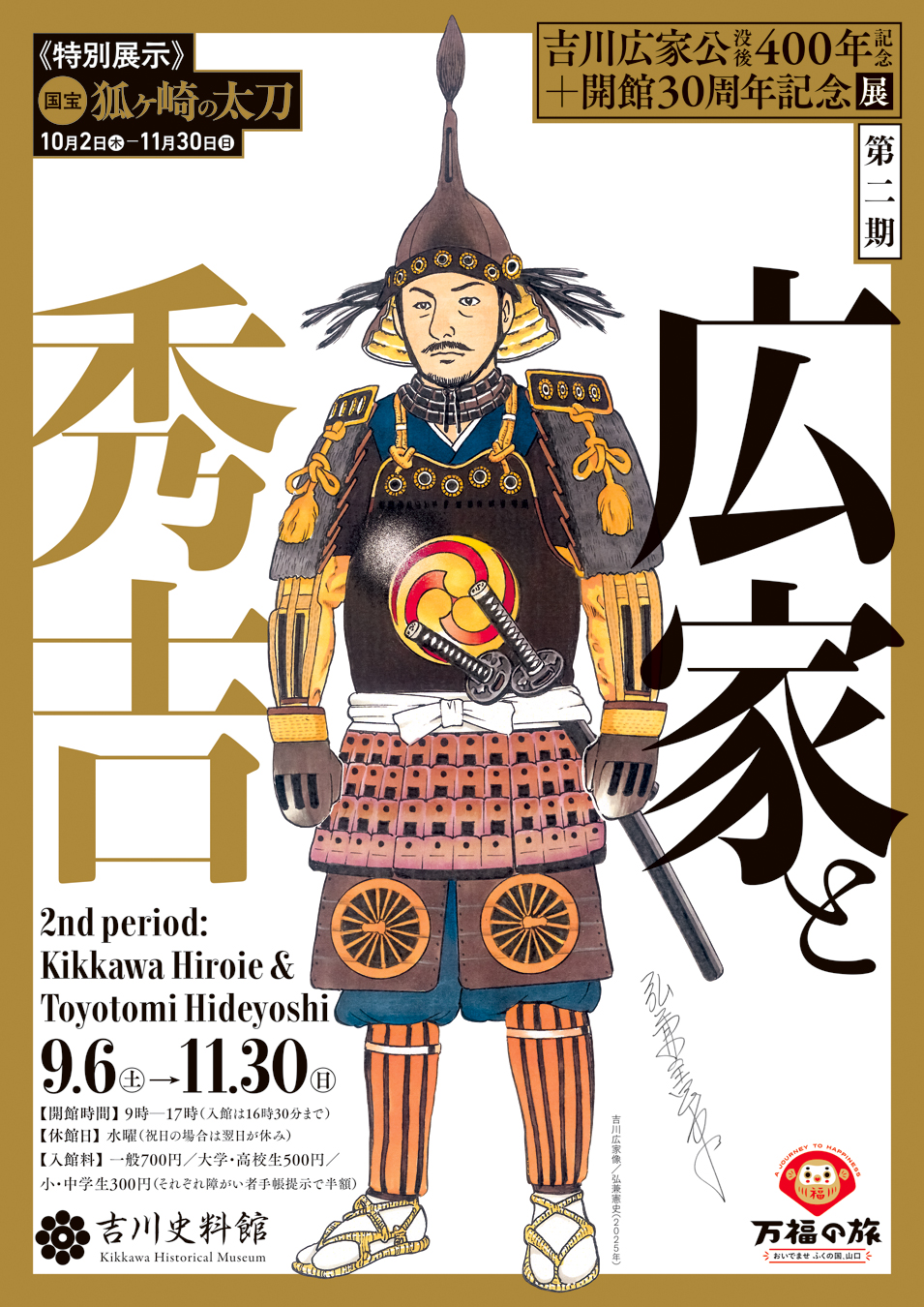 吉川史料館では、岩国初代藩主 吉川広家公 没後400年の節目を記念した展示が行われています。